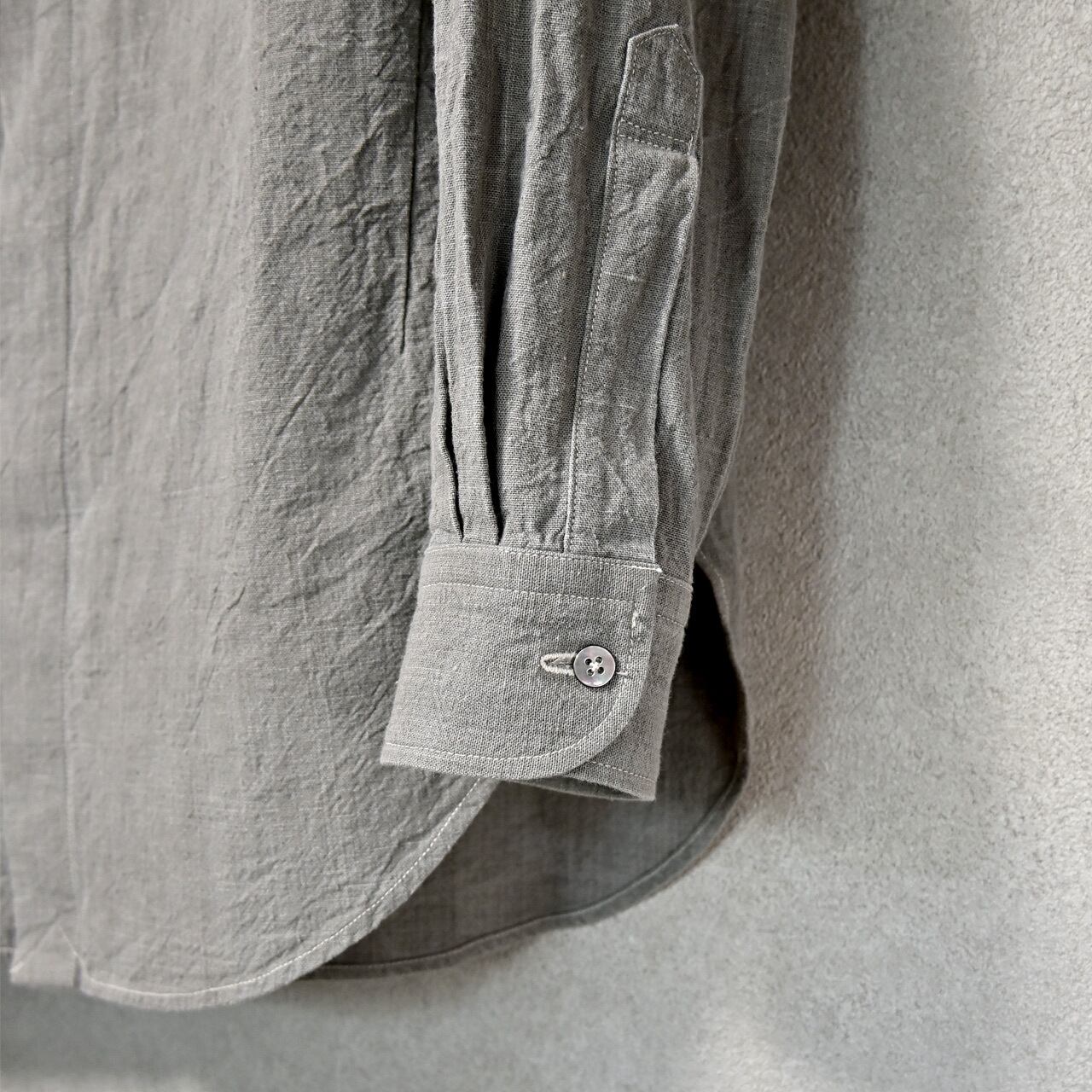 ディテールはオーセンティックなシャツの構造を正統に継承しながら、前立てを比翼仕立てにすることで、より静かで整った表情に仕立てた。