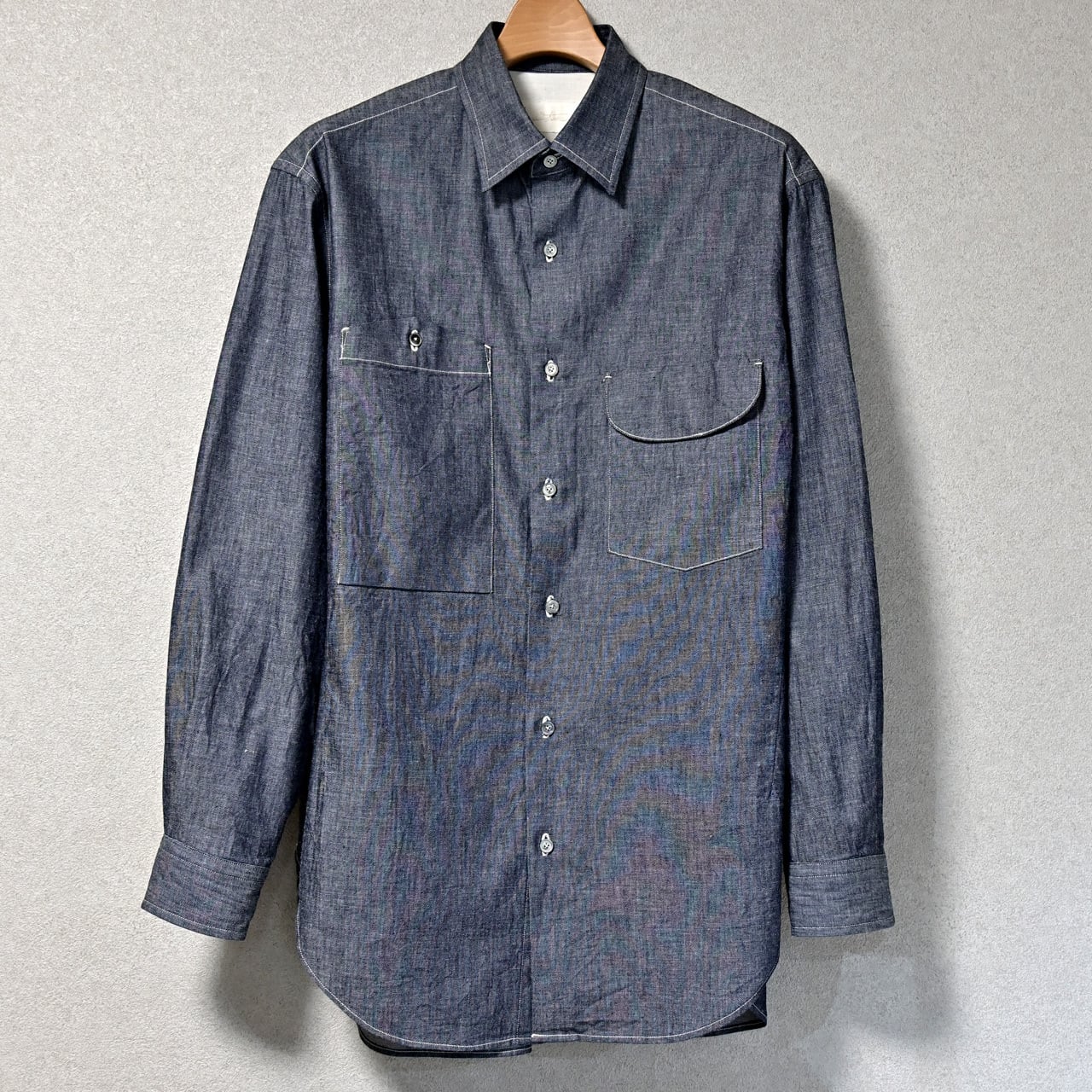 ディテールはオーセンティックなシャツの構造を正統に継承しながら、裾やカフスのカーブで洗練された印象をあたえる。