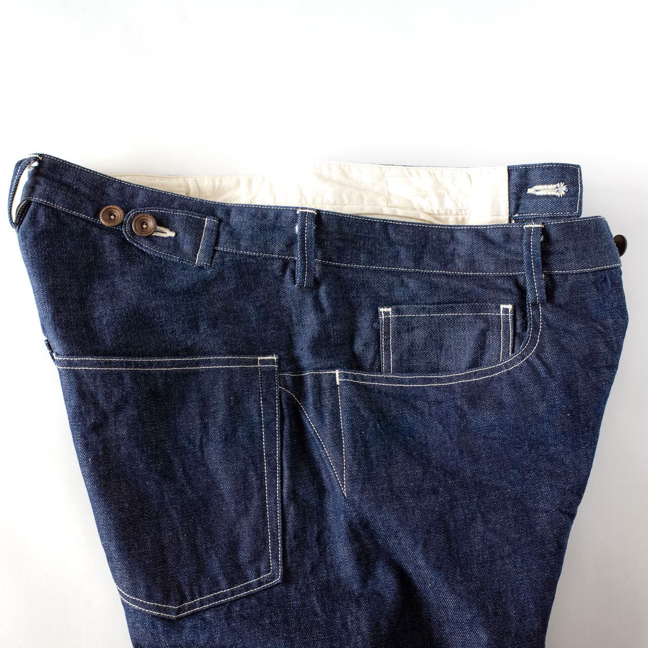 また、ジーンズ特有の金具を用いたシンチバックに代わり、